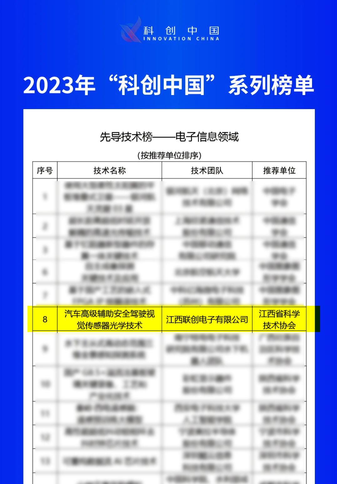 近日,中国科学技术协会公布了2023年度“科创中国”系列榜单遴选结果,开云在线,开云在线(中国)的“汽车高级辅助安全驾驶视觉传感器光学技术”成功入选电子信息领域先导技术榜。