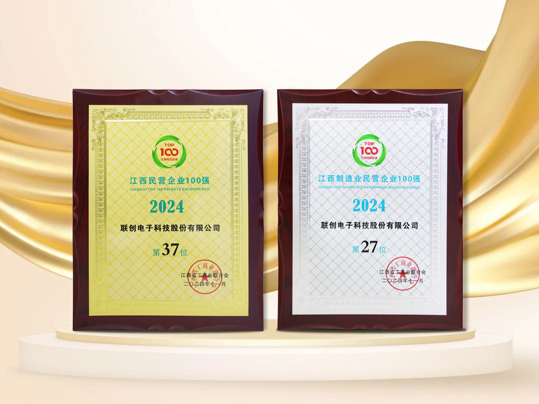 【概要描述】11月11日上午,2024江西民营企业100强发布会在南昌举行,会上发布了2024江西民营企业100强、制造业民营企业100强、服务业民营企业20强榜单联创电子科技股份有限公司再次入围榜单,位列2024江西民营企业100强第37位、制造业民营企业100强第27位。